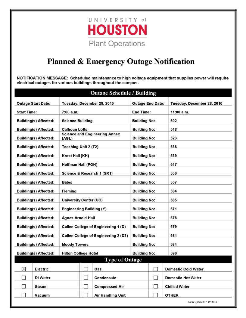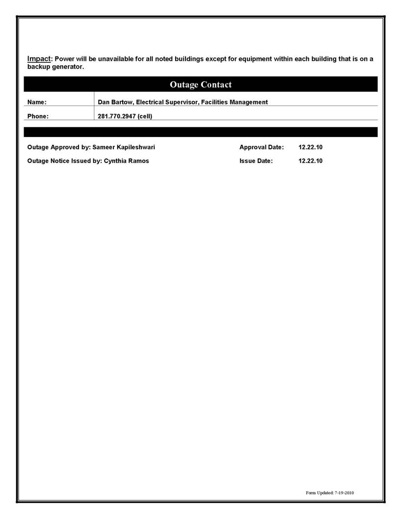 [CCoE Notice] Resending: ELECTRICAL OUTAGE NOTIFICATION - MULTIPLE BUILDINGS - 12.28.10