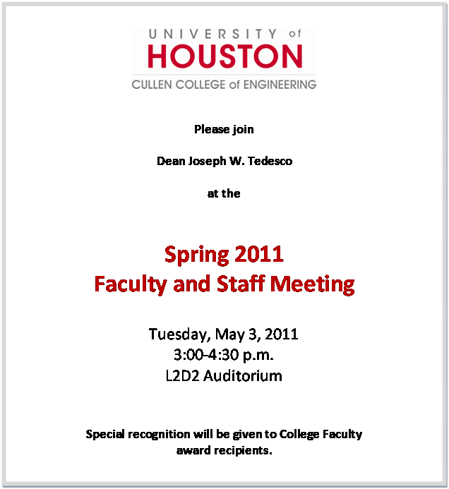 [CCoE Notice] Spring 2011 Faculty-Staff Meeting - May 3, 3:00pm