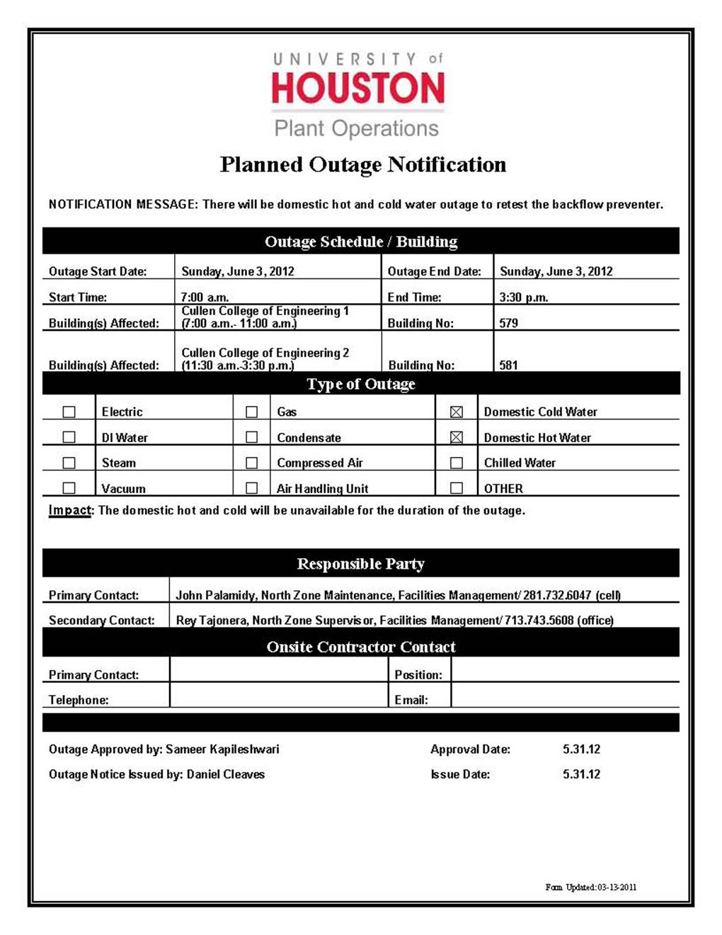[CCoE Notice] DOMESTIC HOT AND COLD WATER OUTAGE- ENGINEERING 1 & 2 (#579, 581)- 6.3.12-6.3.12