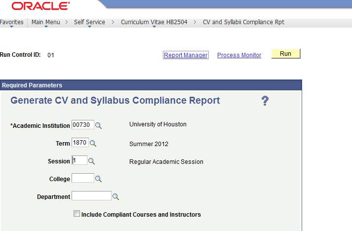 Under state law undergraduate classes must have an electronic posting of a course syllabi and a Curriculum Vitae (CV) for the Instructor of Record. The deadline for Summer Session 1, 2 and 3 is June 11th and July 15th for Summer Session 4. Instructors are able to upload these two documents using a Word template and an upload interface within their Faculty Center.