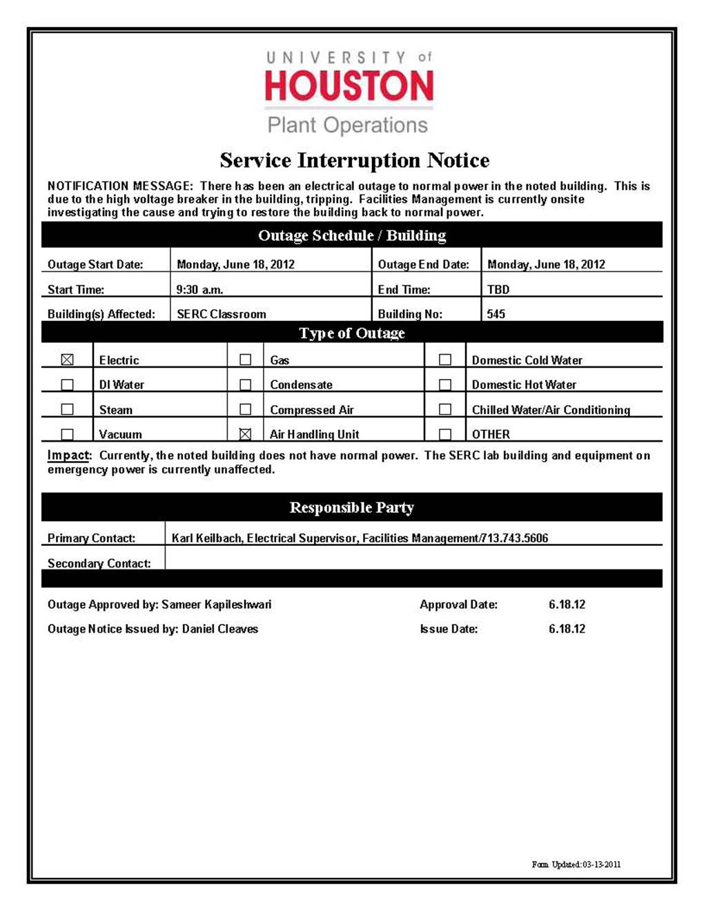 [CCoE Notice] SERVICE INTERRUPTION NOTIFICATION- SERC CLASSROOM (#545)- 6.18.12-TBD