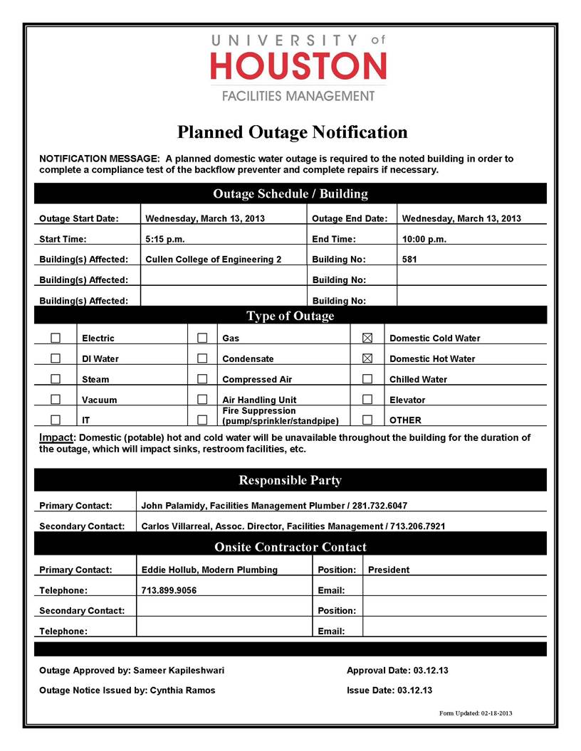 From: Notice to campus for planned [mailto:OUTAGENOTIFICATIONS at LISTSERV.UH.EDU] On Behalf Of Ramos, Cynthia M