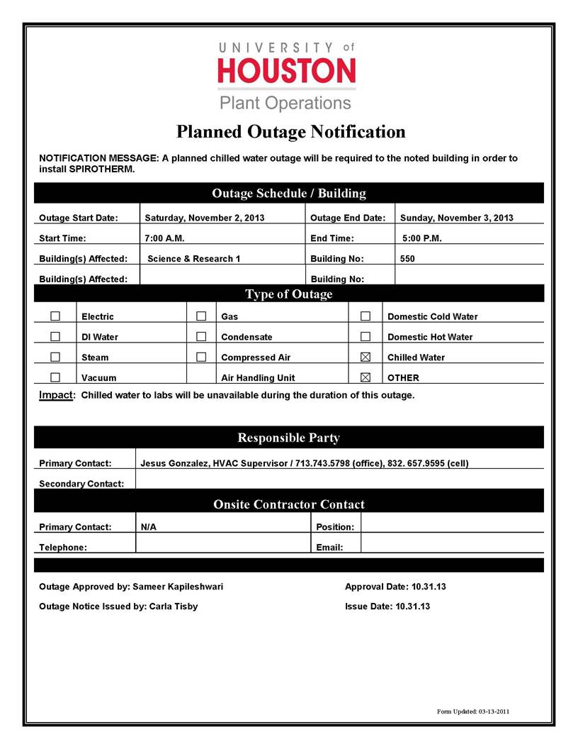 Subject: Re: PLANNED CHILLED WATER SHUT DOWN ~ SR1 LAB #550 (REVISION) DATE CORRECTION