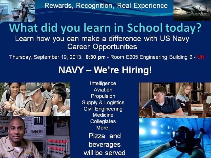 [CCoE Notice] Learn About US Navy Career Opportunities and Eat Pizza!