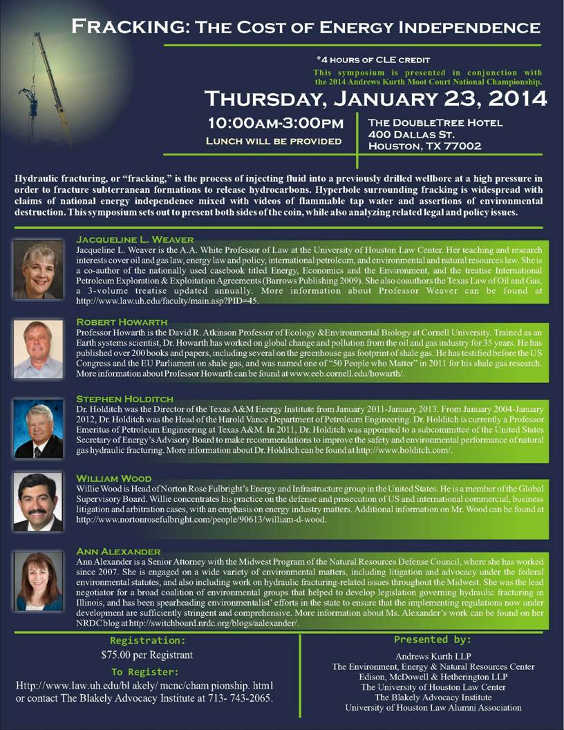 [CCoE Notice] "Fracking: The Cost of Energy Independence" Symposium Jan. 23, 2014-University of Houston