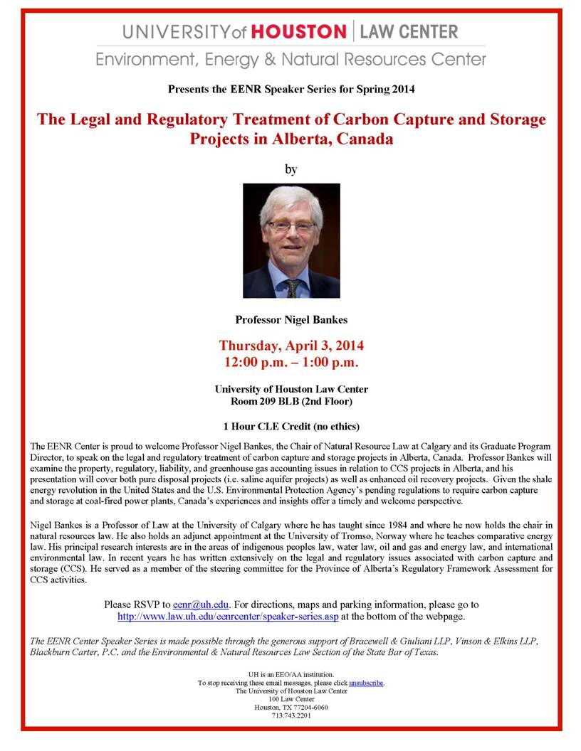 [CCoE Notice] EENR Speaker Series Presents: The Legal and Regulatory Treatment of Carbon Capture and Storage Projects in Alberta, Canada
