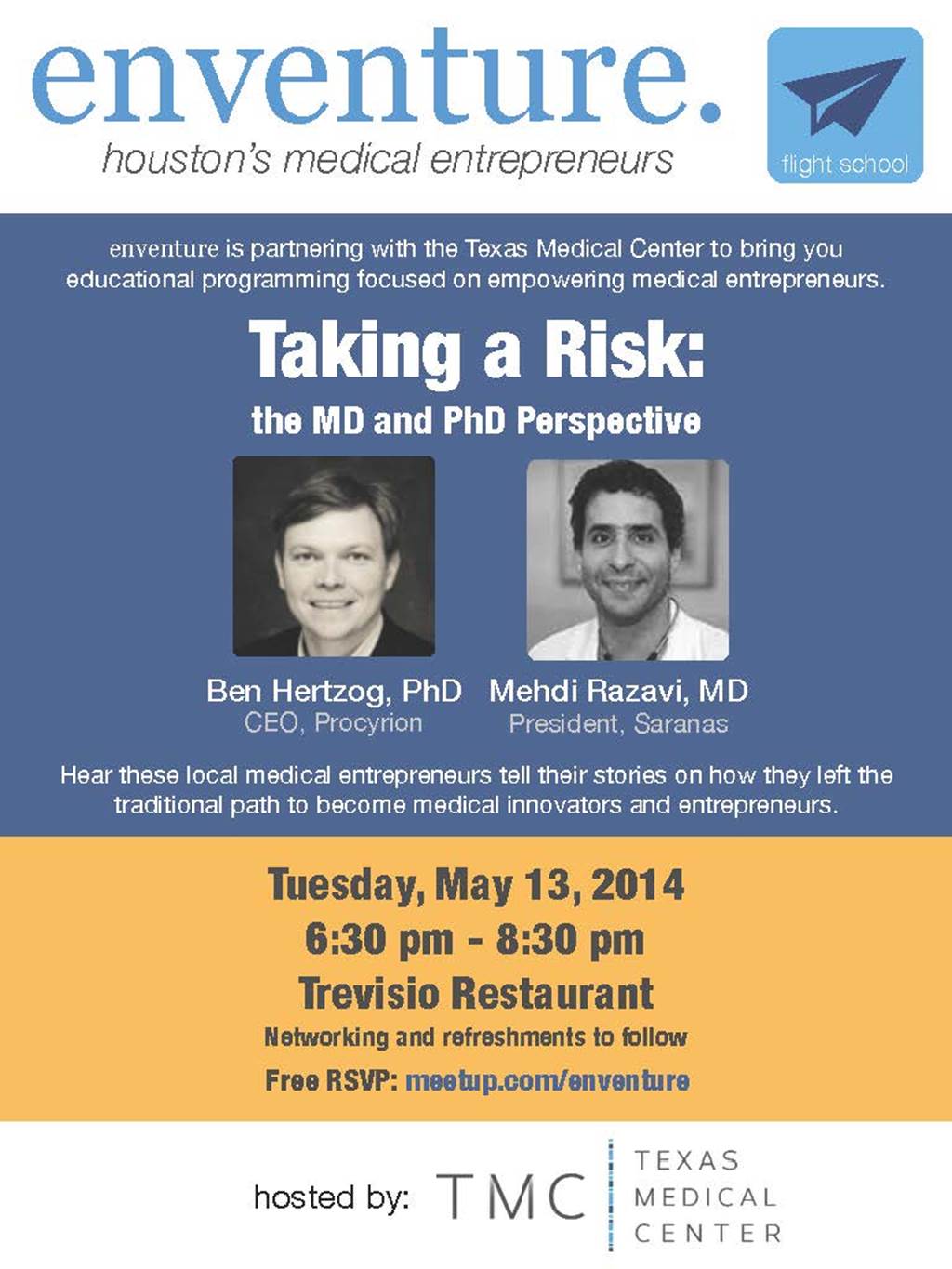 [CCoE Notice] Enventure Seminar: Taking a Risk: the MD and PhD Perspective: May 13