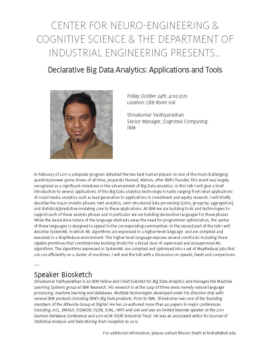 [CCoE Notice] Seminar: Declarative Big Data Analytics: Applications and Tools, by Shivakumar Vaithyanathan