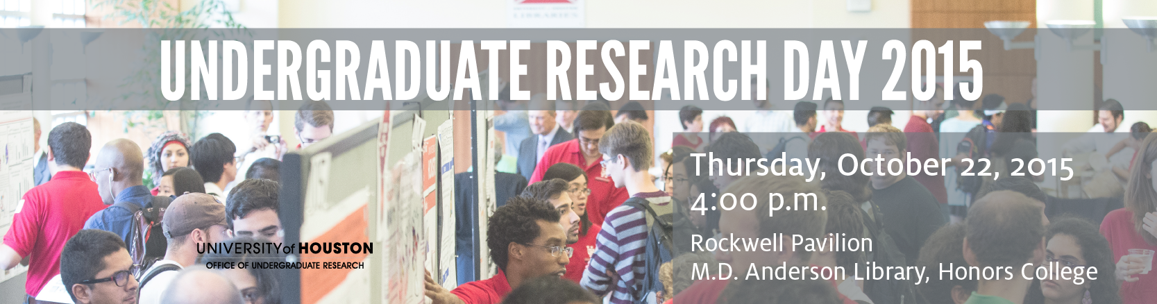 Undergraduate Research Day 2015 is taking place on Thursday, October 22nd from 4-6pm in the Rockwell Pavilion and Honors College, 2nd floor of the MD Anderson Library.