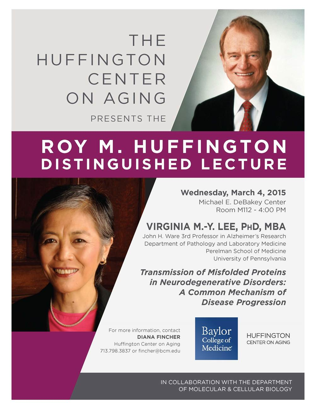 [CCoE Notice] Huffington Center on Aging Distinguished Lecture: March 4 @ 4pm, Rm M112