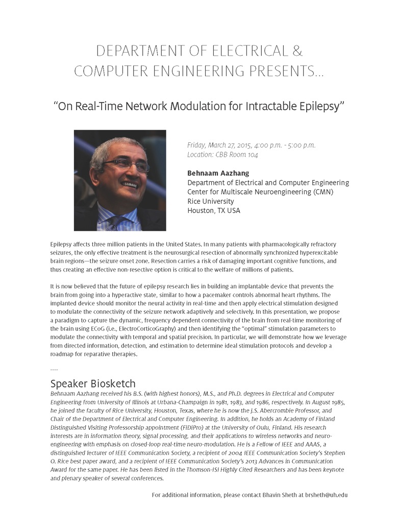 [CCoE Notice] ECE Speaker Series Presents: On Real-Time Network Modulation for Intractable Epilepsy