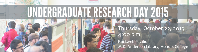 You are cordially invited to Undergraduate Research Day 2015 on Thursday, October 22nd at 4 p.m. in the Rockwell Pavilion, M.D. Anderson Library, and the Honors College.