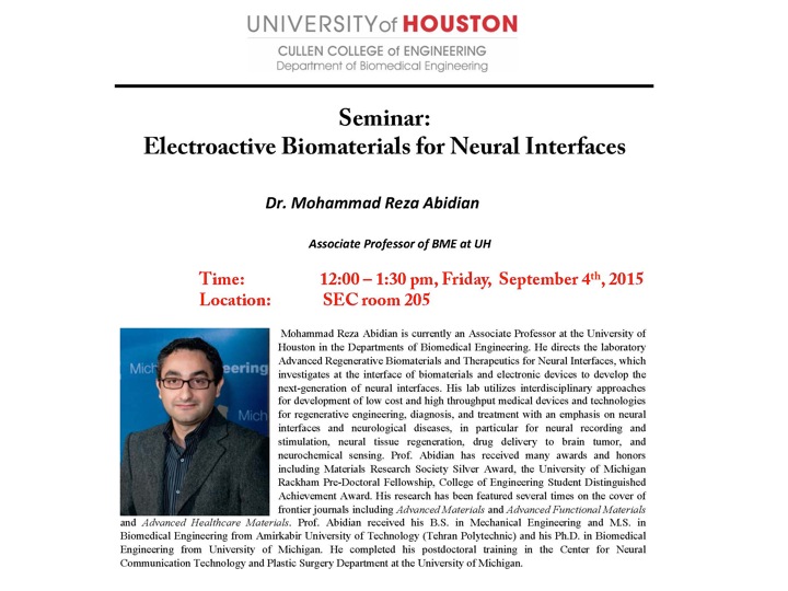 [CCoE Notice] Seminar: Electroactive Biomaterials for Neural Interfaces