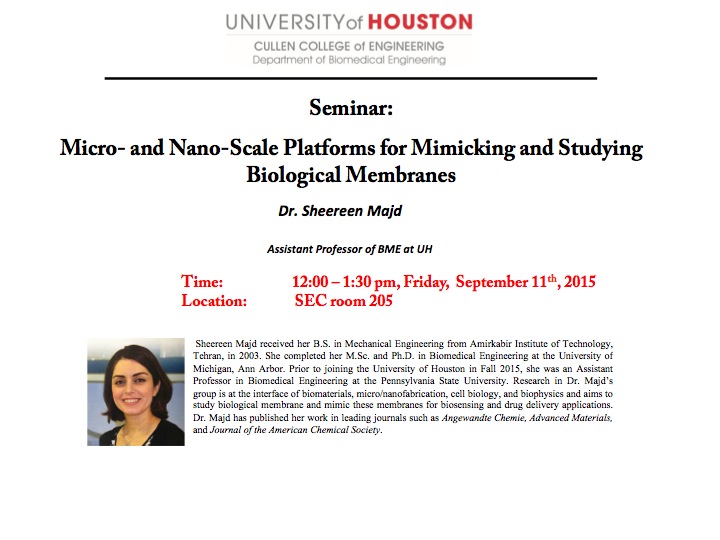 [CCoE Notice] Seminar: Micro- and Nano-Scale Platforms for Mimicking and Studying Biological Membranes