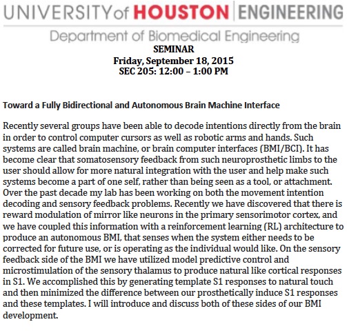 [CCoE Notice] Seminar: Toward a Fully Bidirectional and Autonomous Brain Machine Interface