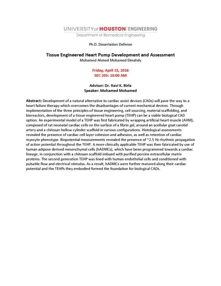 [CCoE Notice] Dissertation Defense: Tissue Engineered Heart Pump Development and Assessment