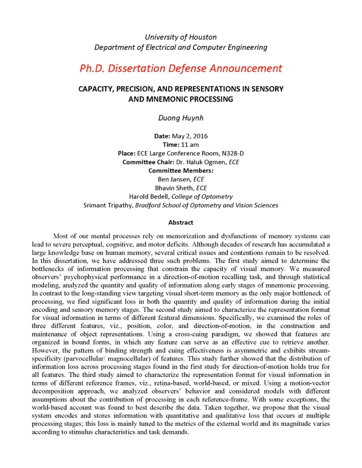 [CCoE Notice] Dissertation Defense: Capacity, Precision, and Representing in Sensory and Mnemonic Processing