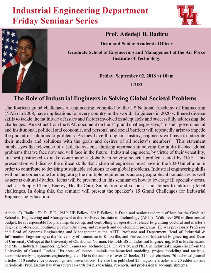 [CCoE Notice] IE Seminar: The Role of Industrial Engineers in Solving Global Societal Problems