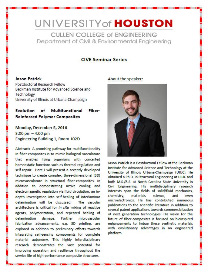 [CCoE Notice] CEE Seminar Announcement-Dr. Jason Patrick- Monday, December 5th from 2:30-4:00PM in 102D