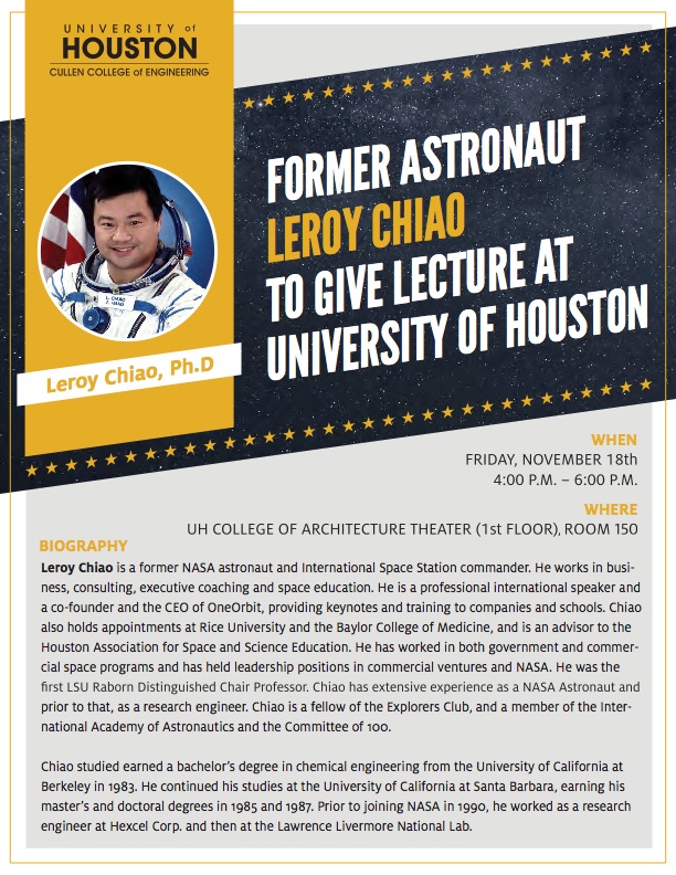 [CCoE Notice] Former NASA Astronaut Leroy Chiao Delivers Lecture at UH