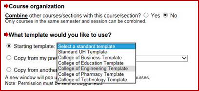 It's easy to get the new template! When you request your Blackboard course site in CRS (https://crs.uh.edu), at Step 2, when asked "What template would you like to use?" select "College of Engineering Template". Once your Blackboard course site is created, you can start fresh with a new "empty shell", or you can copy content from your previous course sites.