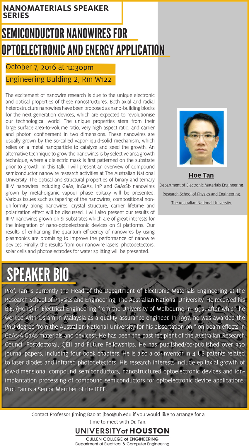 [CCoE Notice] Nanomaterials Speaker Series: Hoe Tan