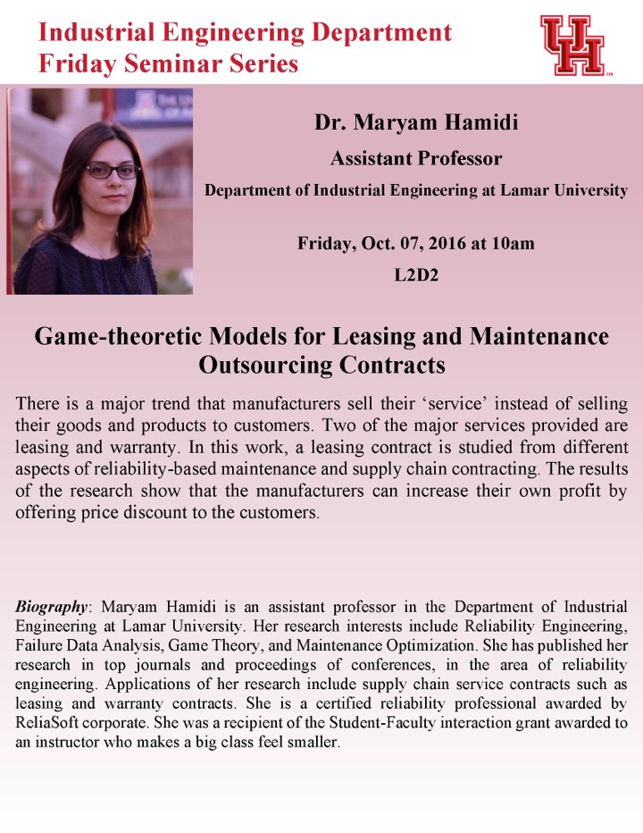 [CCoE Notice] Seminar: Game-theoretic Models for Leasing and Maintenance Outsourcing Contracts