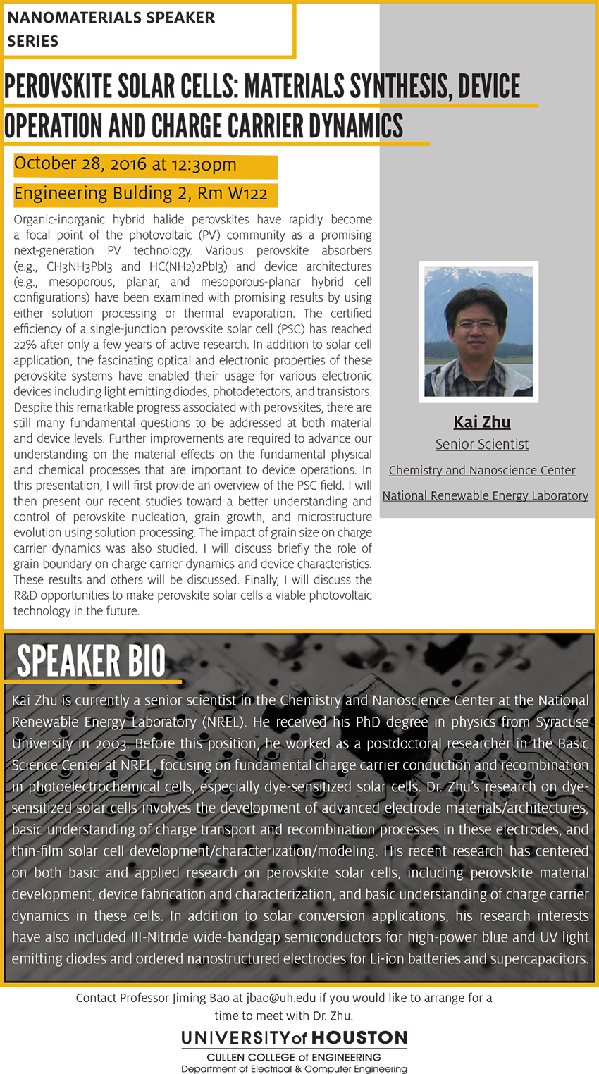 [CCoE Notice] Nanomaterials Speaker Series: Kai Zhu