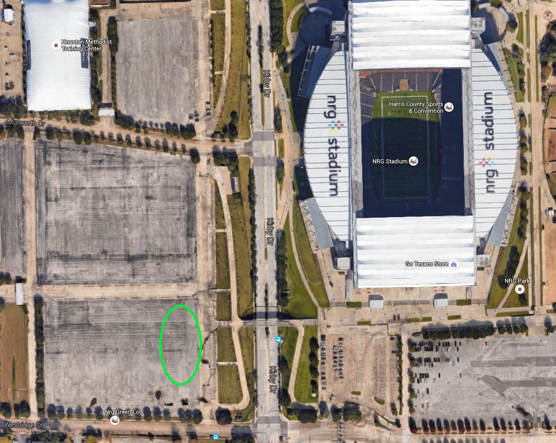 We will be tailgating in the Green Lot (#13 on the attachment), which is just over the walkway (over Kirby) from NRG. With the game being an 11:00am kickoff, the tailgate will take place from 7:00am-10:00am.