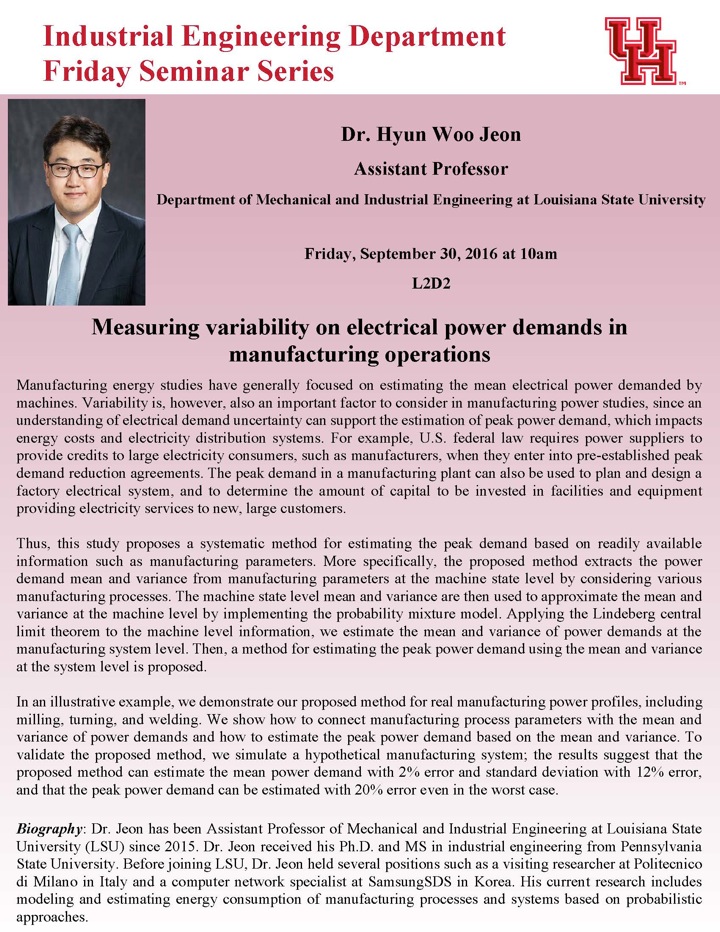 [CCoE Notice] IE Seminar: Measuring variability on electrical power demands in manufacturing operations