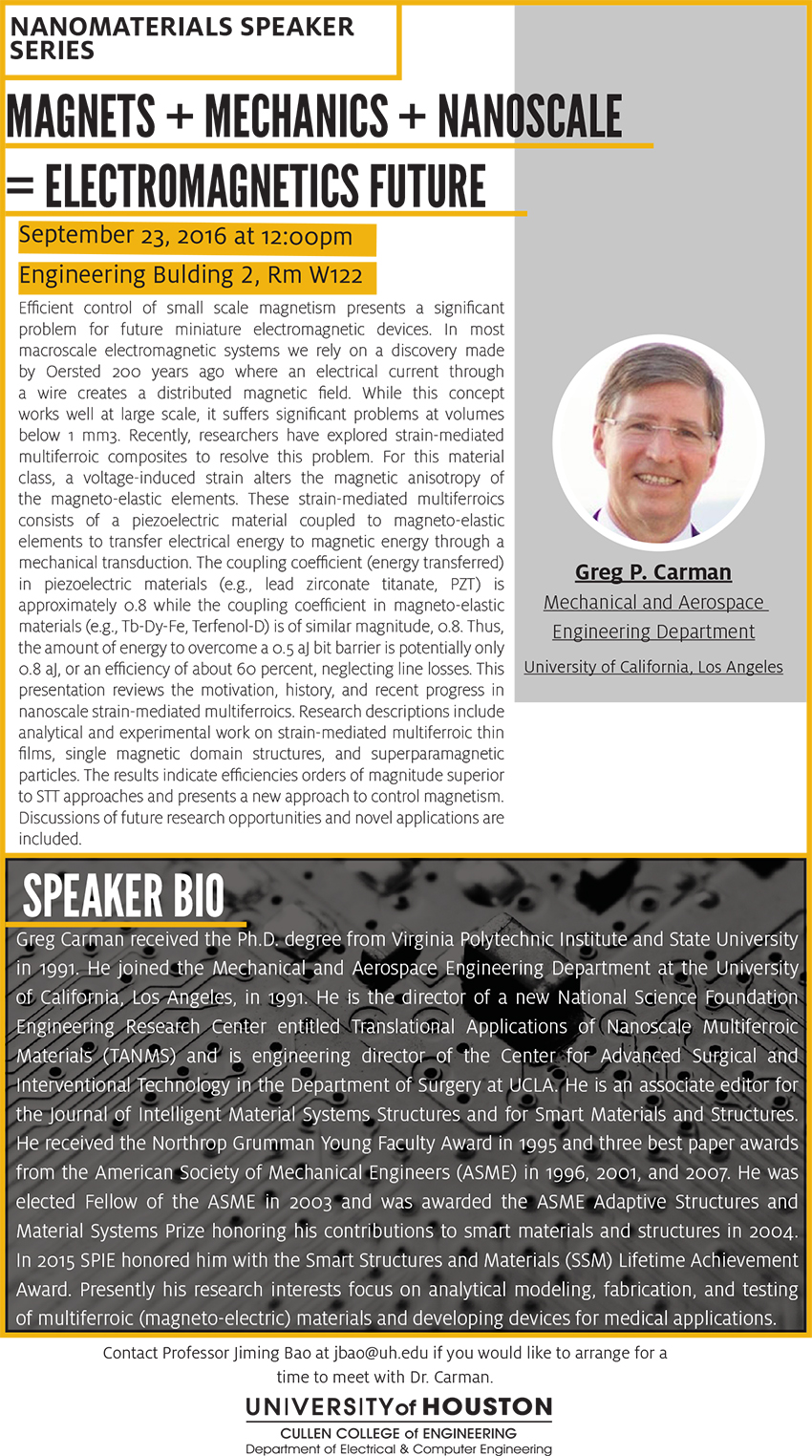 [CCoE Notice] TIME UPDATE: Nanomaterials Speaker Series: Greg Carman
