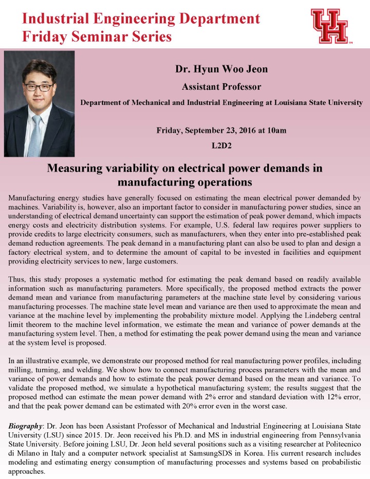 [CCoE Notice] CORRECTION: IE Seminar: Measuring variability on electrical power demands in manufacturing operations