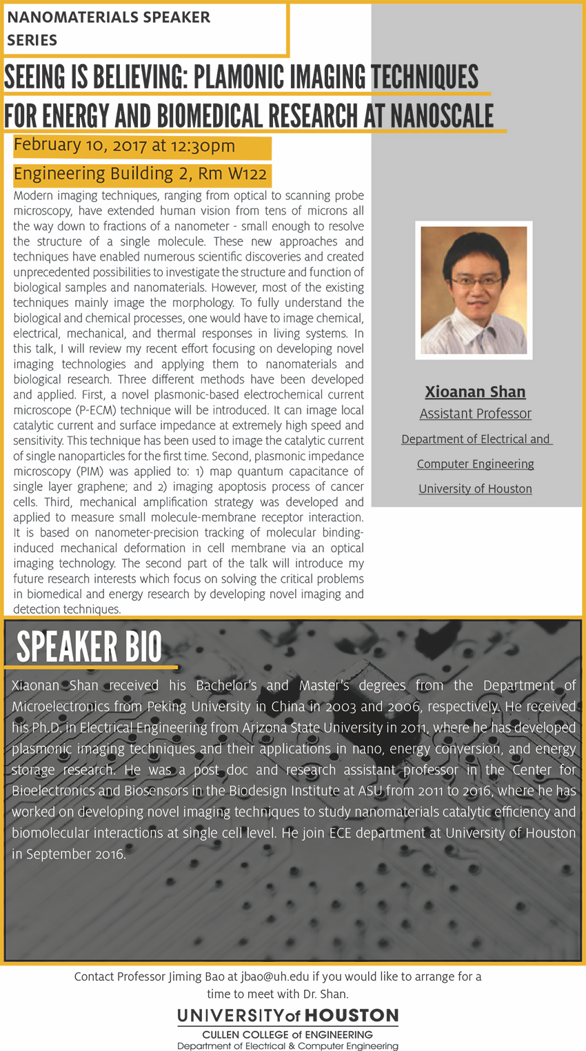 [CCoE Notice] Nanomaterials Speaker Series: Xionan Shan