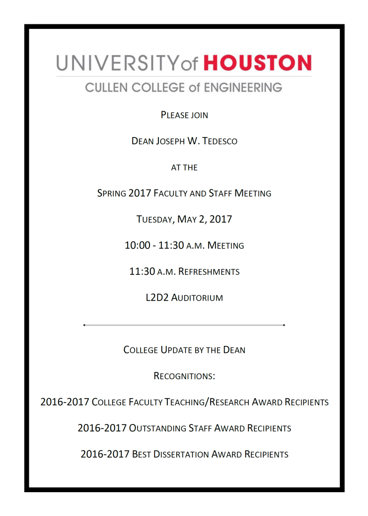 [CCoE Notice] Spring 2017 Faculty and Staff Meeting - Tomorrow at 10am