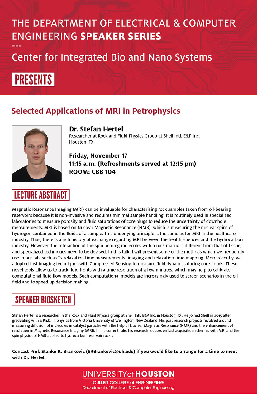 [CCoE Notice] ECE Speaker Series Presents: Selected Applications of MRI in Petrophysics (Dr. Stefan Hertel)