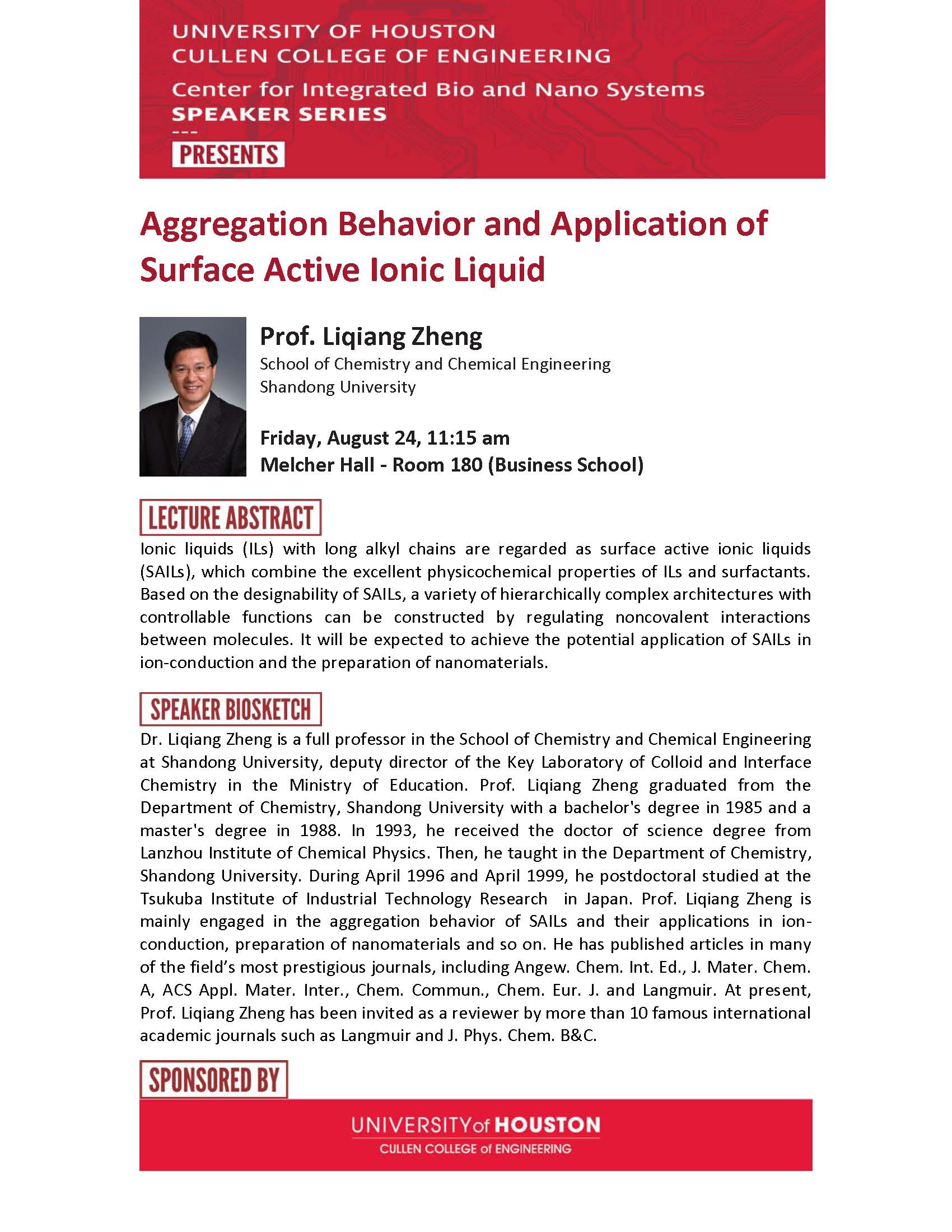 [CCoE Notice] Nano Speaker Series Presents: Aggregation Behavior and Application of Surface Active Ionic Liquid