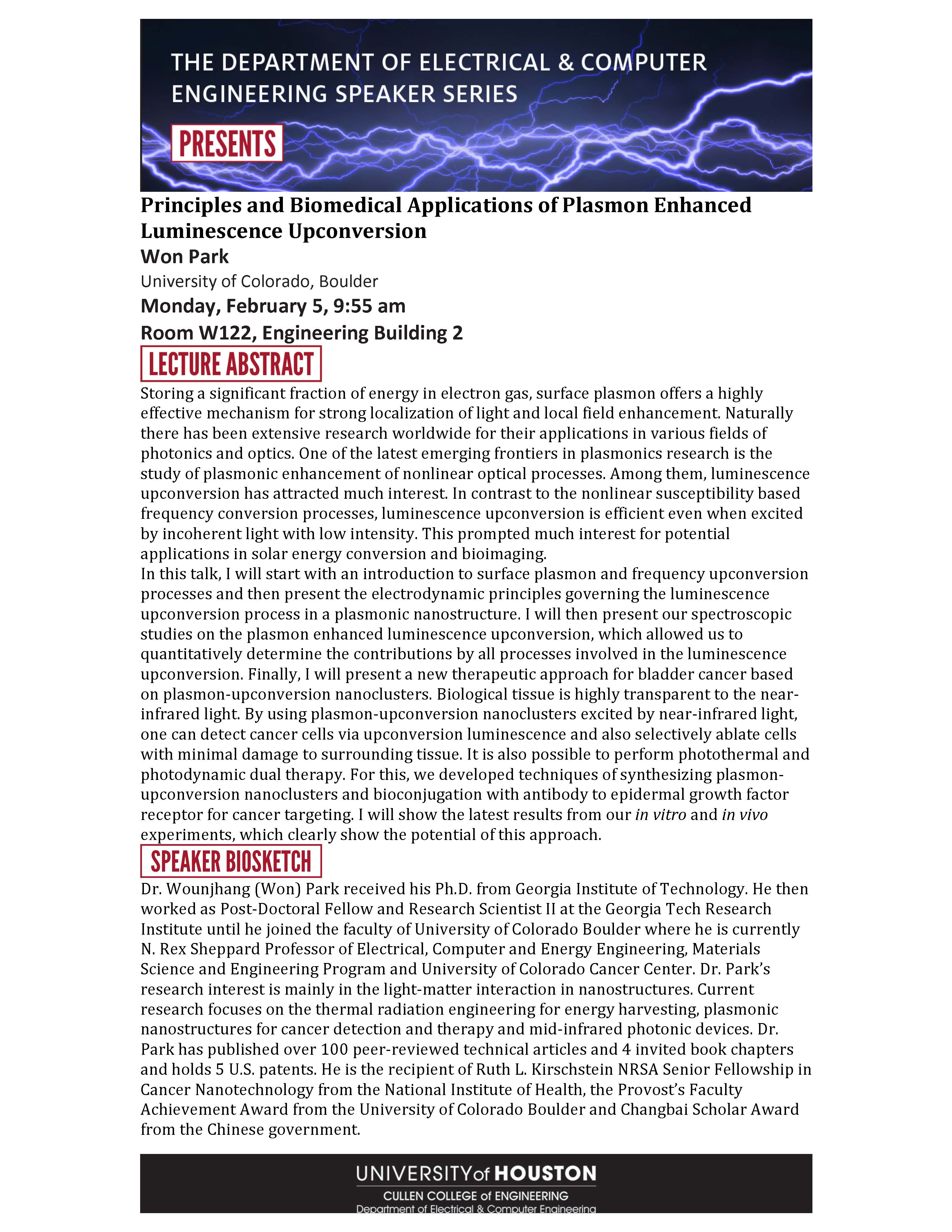 [CCoE Notice] ECE Speaker Series Presents: Principles and Biomedical Applications of Plasmon Enhanced Luminescence Upconversion