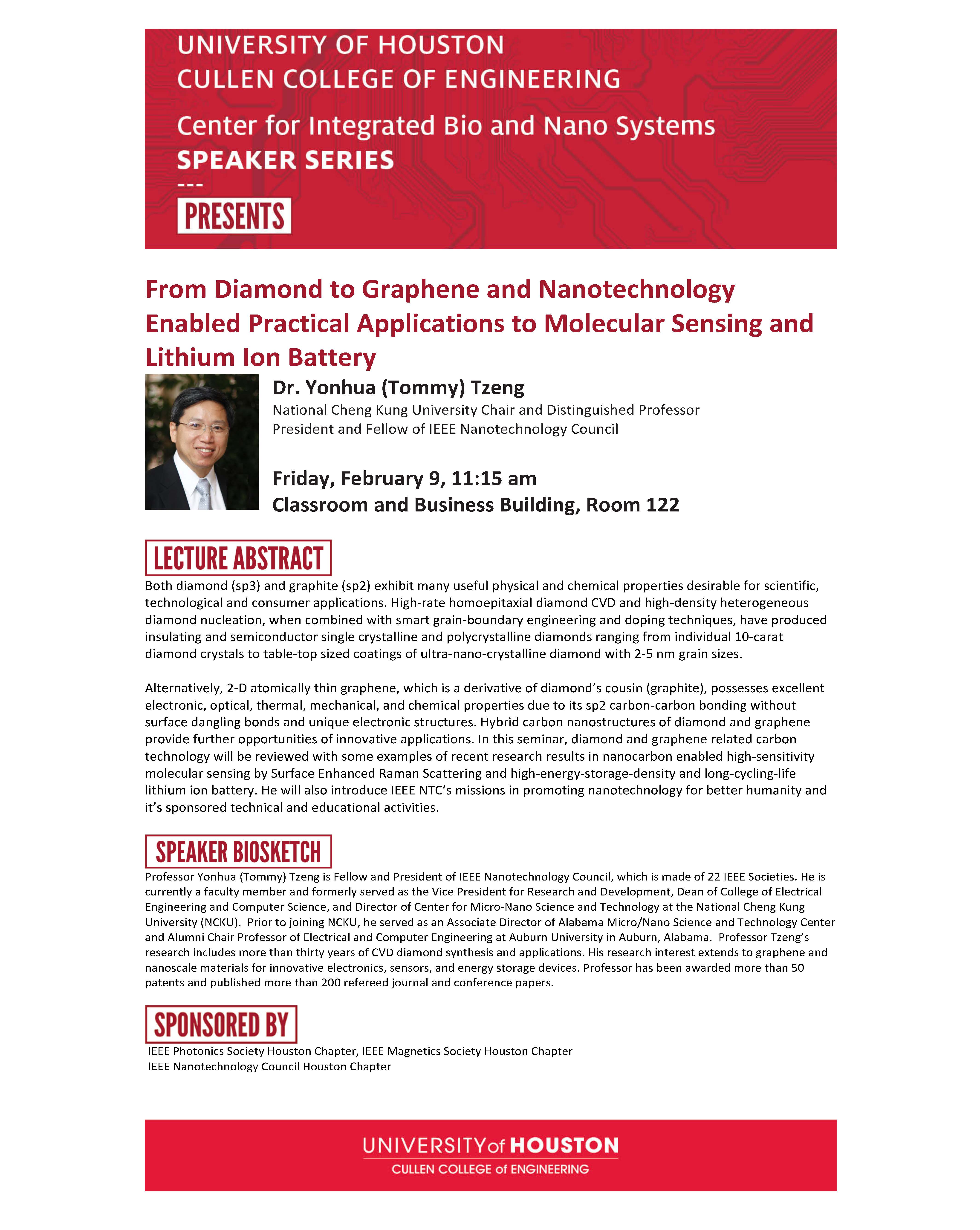 [CCoE Notice] Nano Speaker Series Presents: From Diamond to Graphene and Nanotechnology Enabled Practical Applications to Molecular Sensing and Lithium Ion Battery