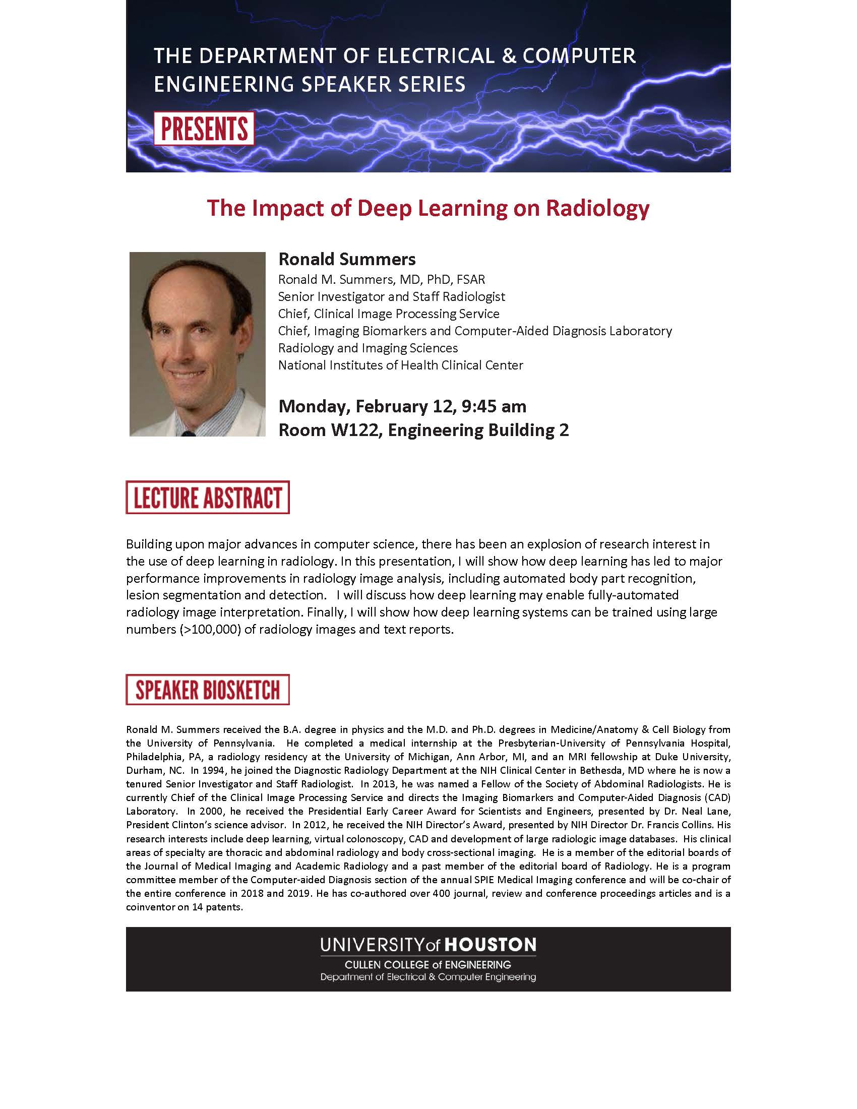 [CCoE Notice] DATE CORRECTION: ECE Speaker Series Presents: The Impact of Deep Learning on Radiology