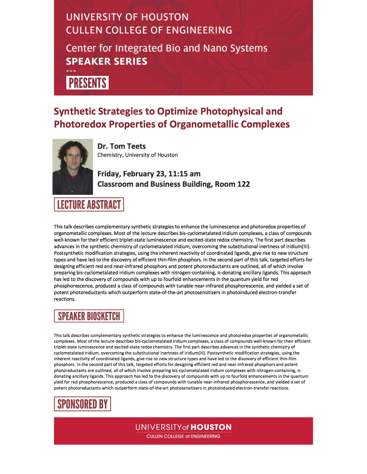 [CCoE Notice] Nano Speaker Series Presents: Synthetic Strategies to Optimize Photophysical and Photoredox Properties of Organometallic Complexes
