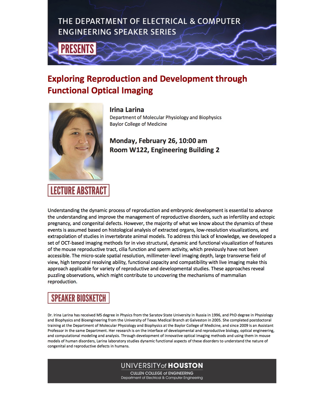 [CCoE Notice] ECE Speaker Series Presents: Exploring Reproduction and Development Through Functional Optical Imaging
