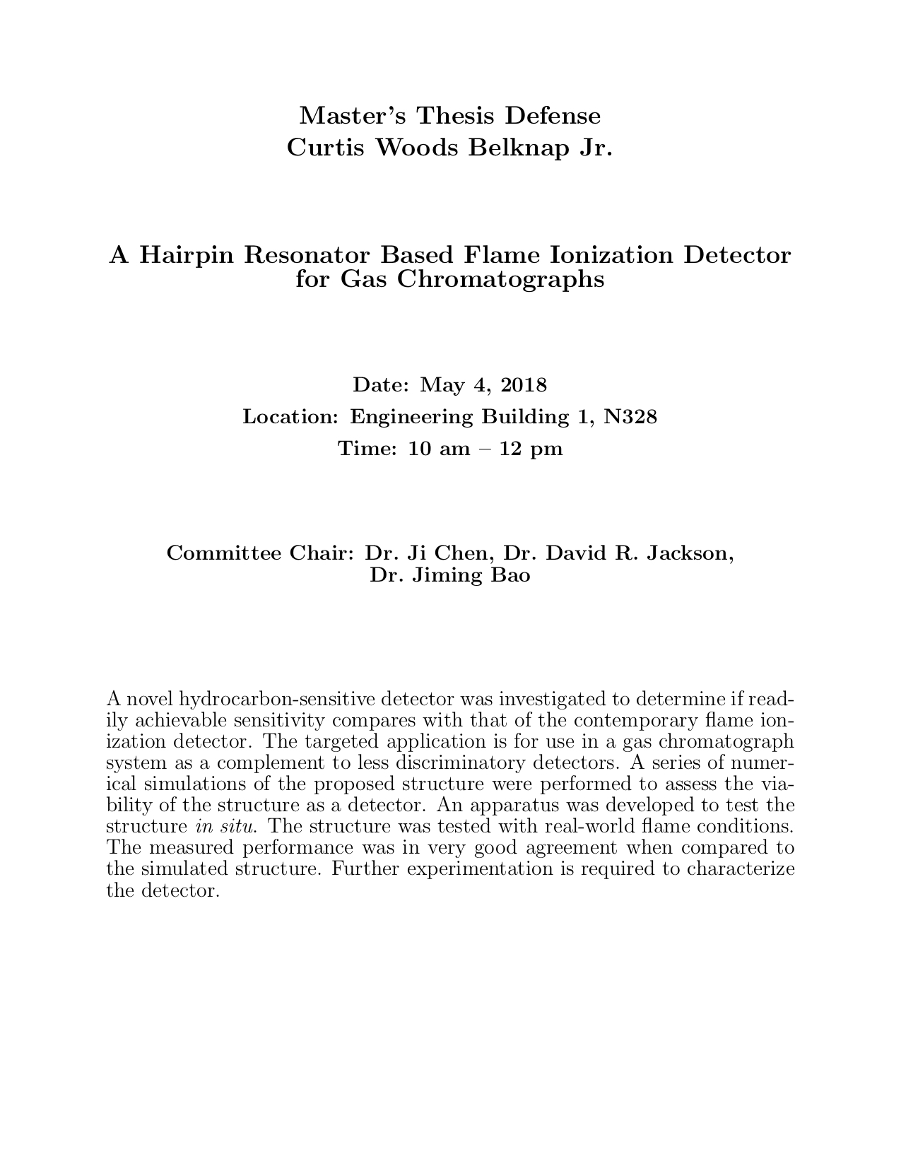 [CCoE Notice] Thesis Defense: A Hairpin Resonator Based Flame Ionization Detector for Gas Chromatographs