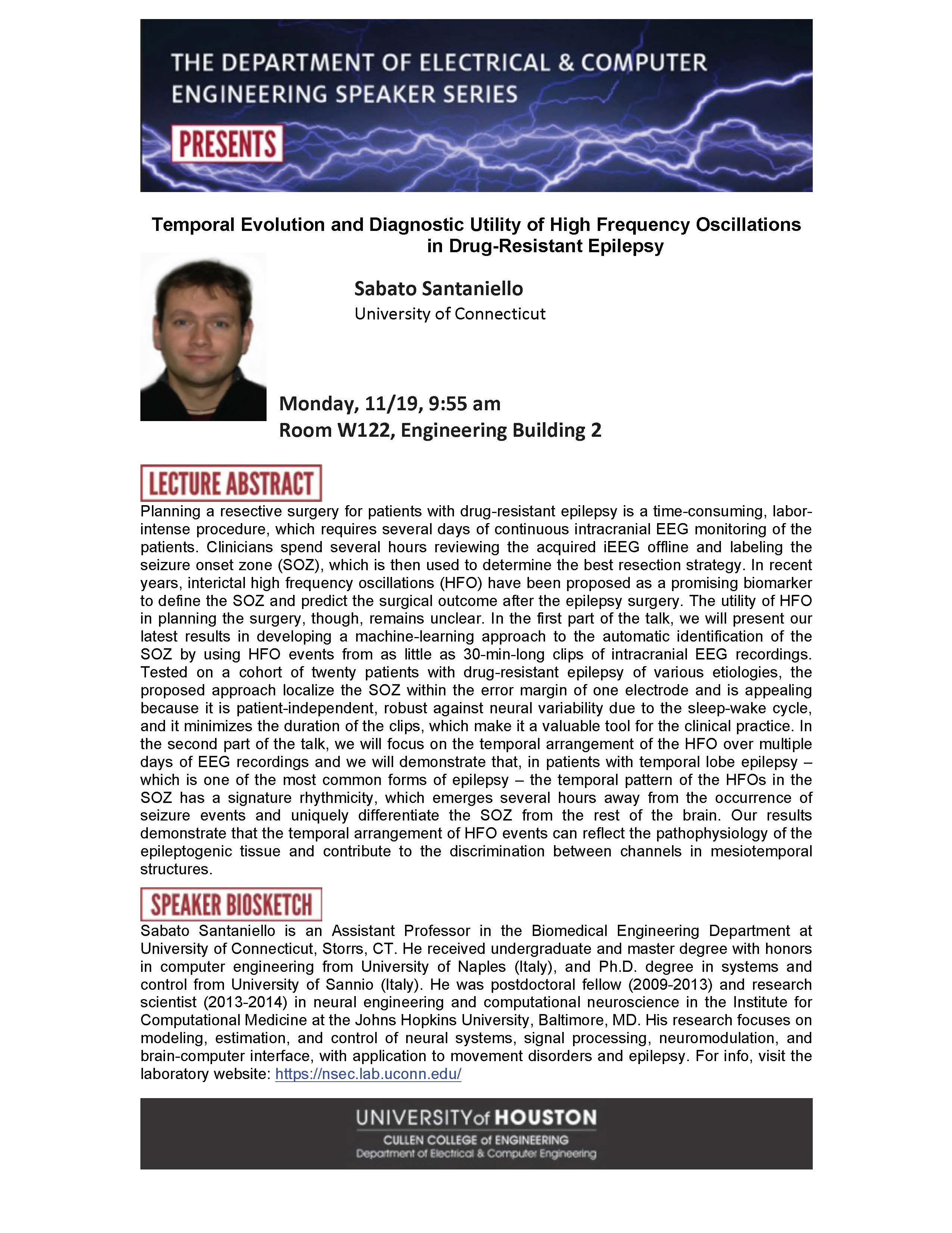 [CCoE Notice] ECE Seminar Series Presents: Temporal Evolution and Diagnostic Utility of High Frequency Oscillations in Drug-Resistant Epilepsy
