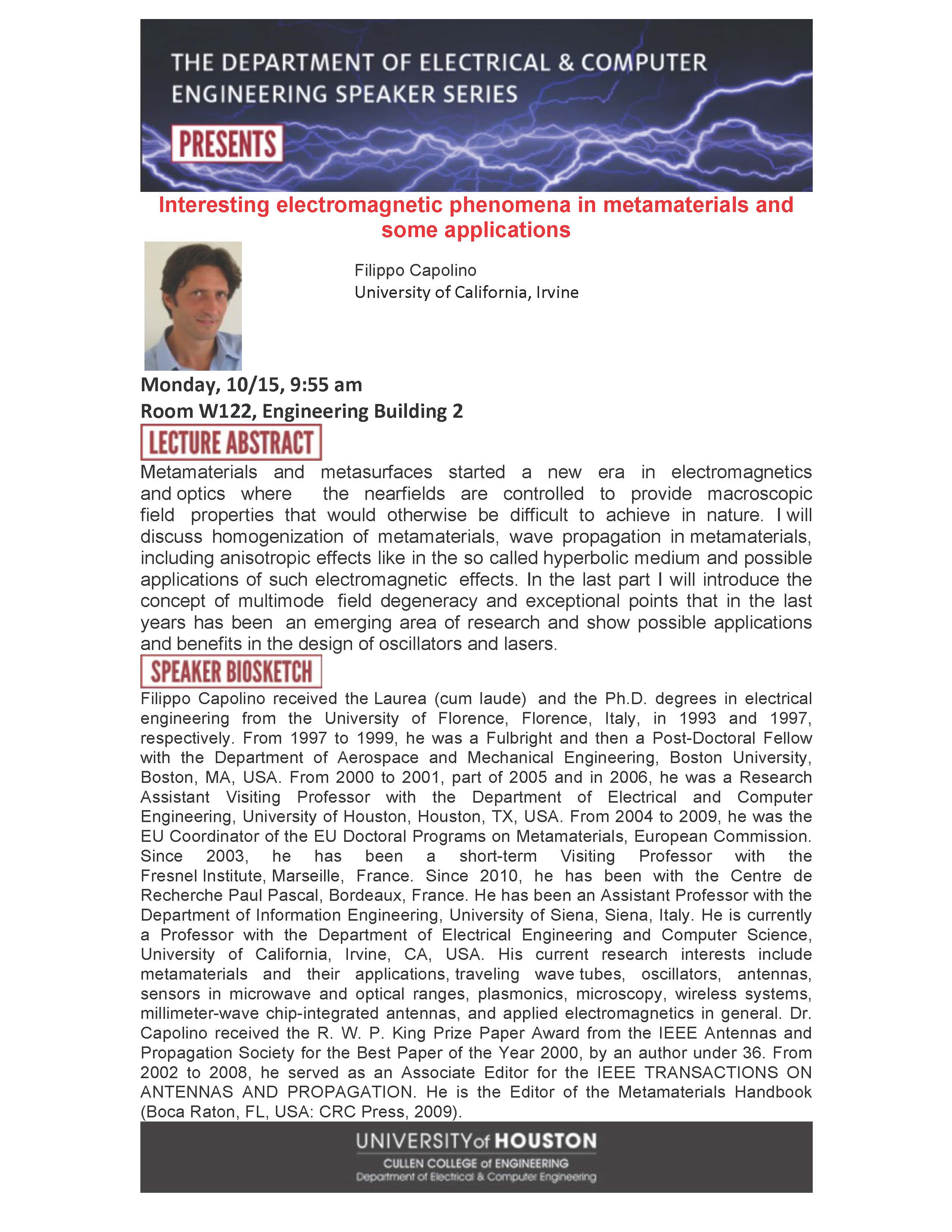[CCoE Notice] ECE Seminar Series Presents: Interesting electromagnetic phenomena in metamaterials and some applications