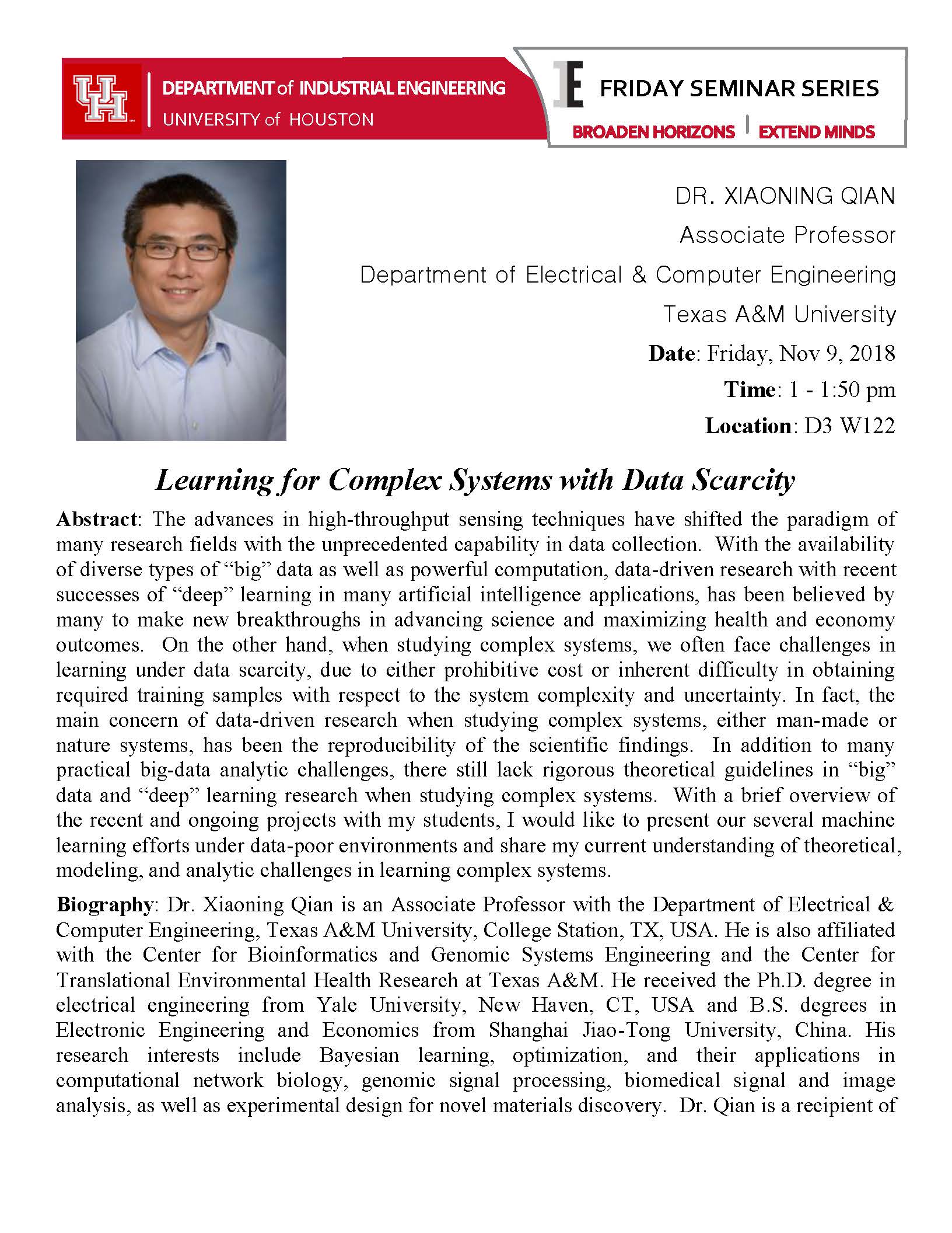 [CCoE Notice] IE Seminar Series Presents: Learning for Complex Systems with Data Scarcity