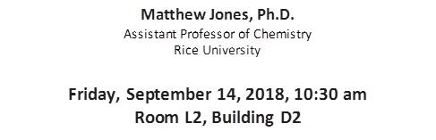 [Matthew Jones, Ph.D. Assistant Professor of Chemistry Rice University Friday, September 14, 2018, 10:30 am Room L2, Building D2]