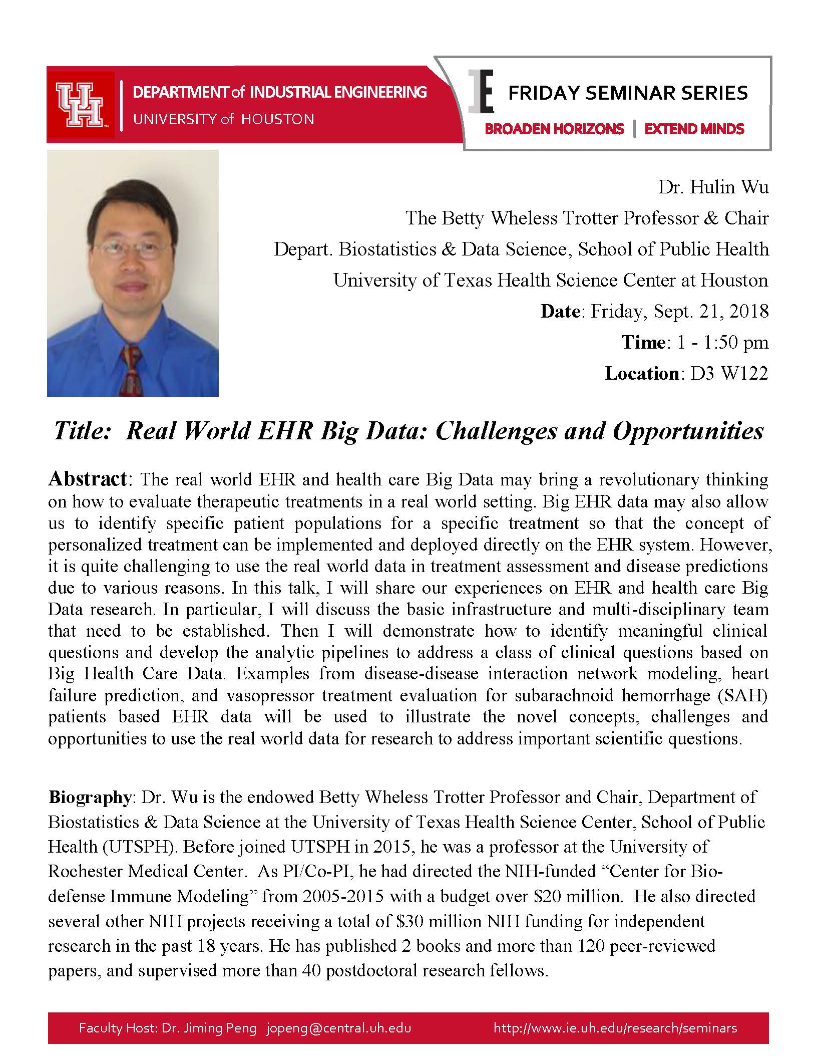 [CCoE Notice] IE Seminar Series Presents: Real World EHR Big Data: Challenges and Opportunities