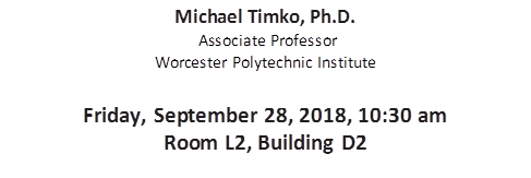 [Michael Timko, Ph.D. Associate Professor Worcester Polytechnic Institute Friday, September 28, 2018, 10:30 am Room L2, Building D2]
