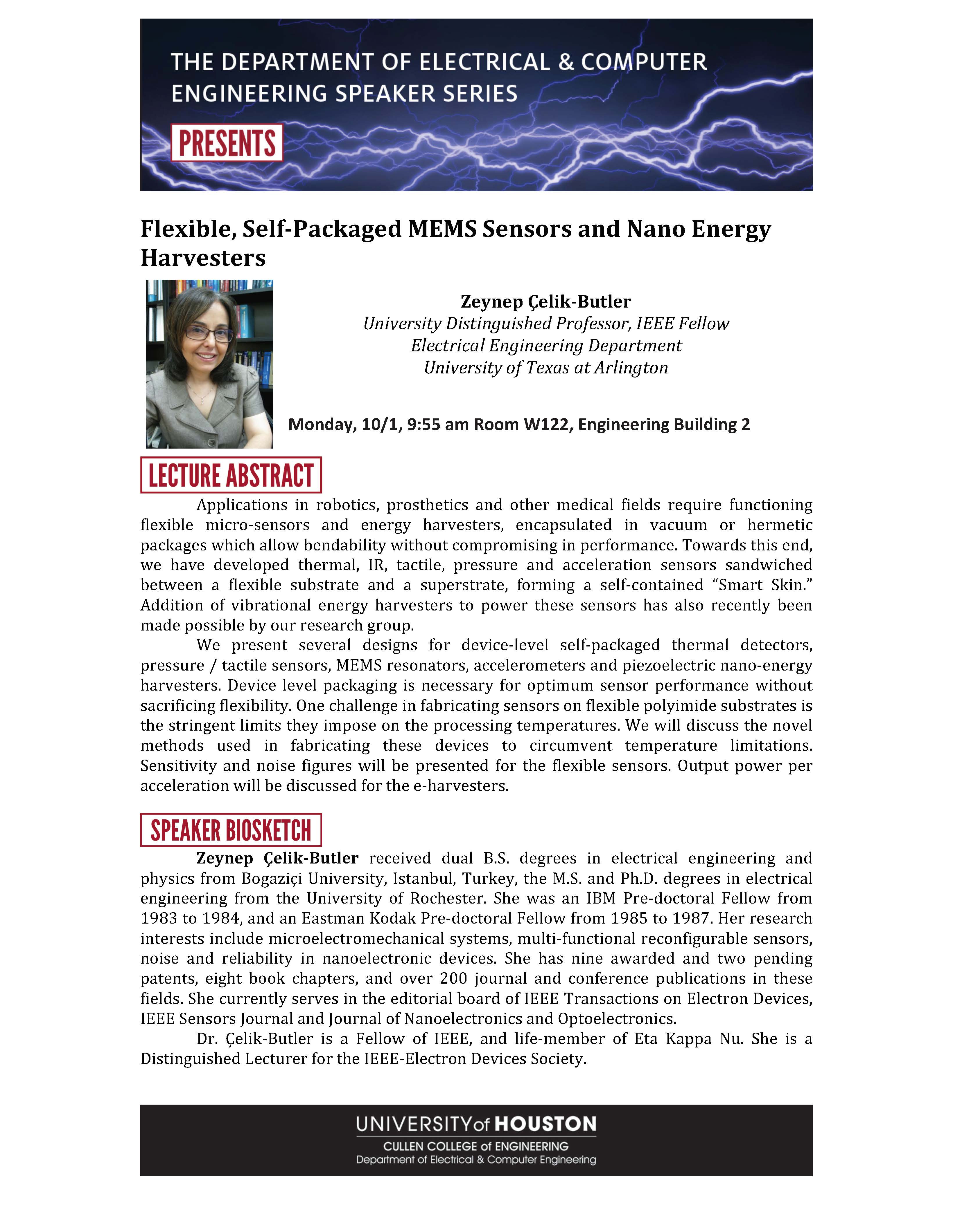 [CCoE Notice] ECE Speaker Series Presents: Flexible, Self-Packaged MEMS Sensors and Nano Energy Harvesters