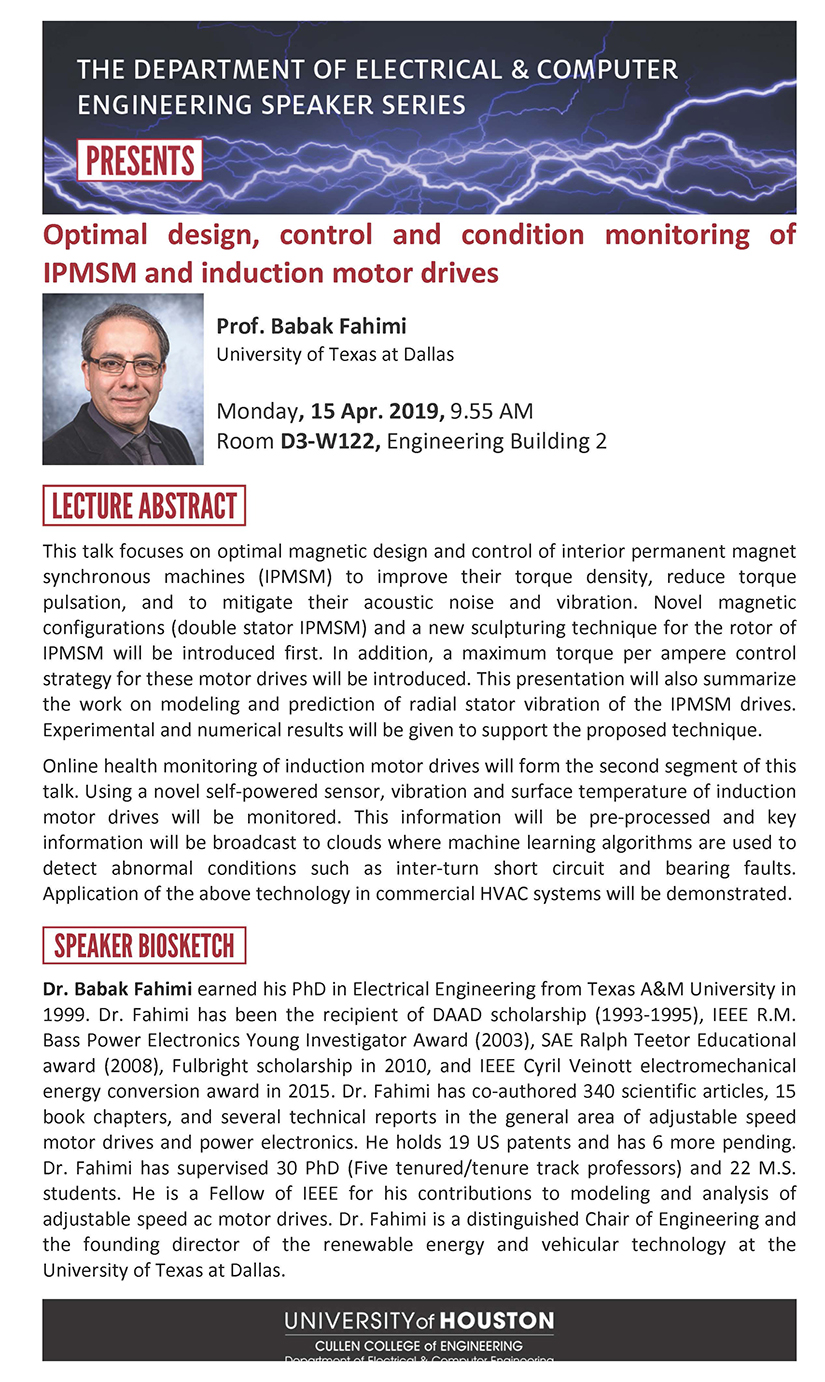 ECE Seminar Series Talk on Motors by Dr. Babak Fahimi (15 Apr. 2019 at 10 AM in D3-W122)